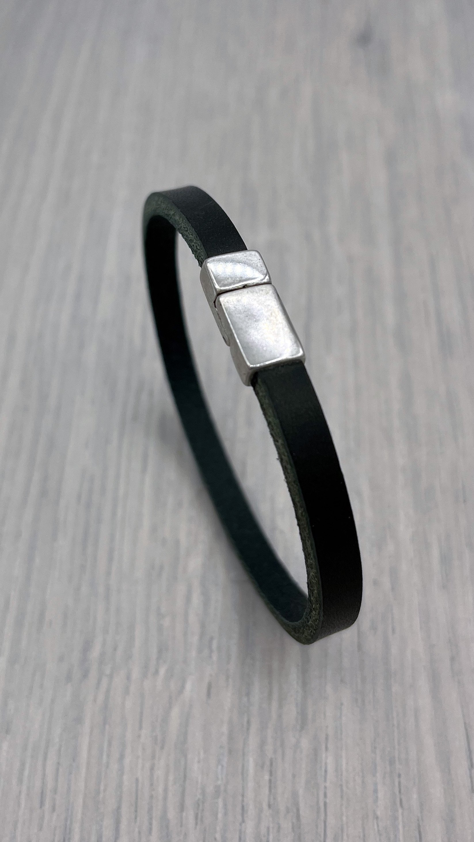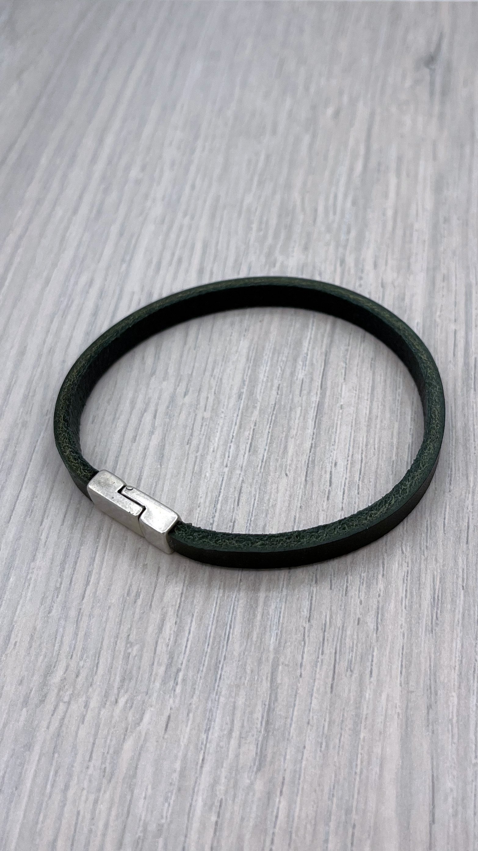 Cuir tannage végétal. Fermoir magnétique en argent zamac brossé.